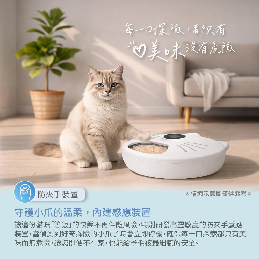 ✓ 餵食盤轉動過程遇阻力會啟動安全機制,立即停止旋轉並退回,防止毛孩受傷或被夾住。