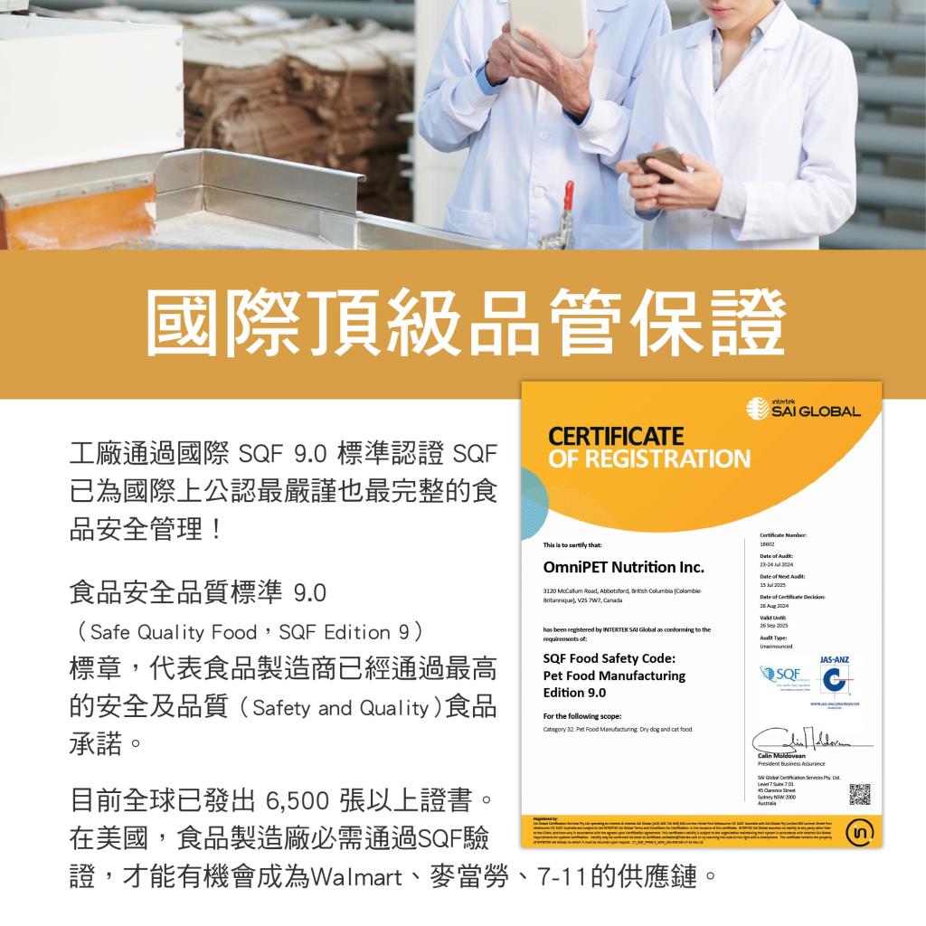 ✓ 營養標示項目符合AAFCO貓糧營養成分表規範成長階段營養標準