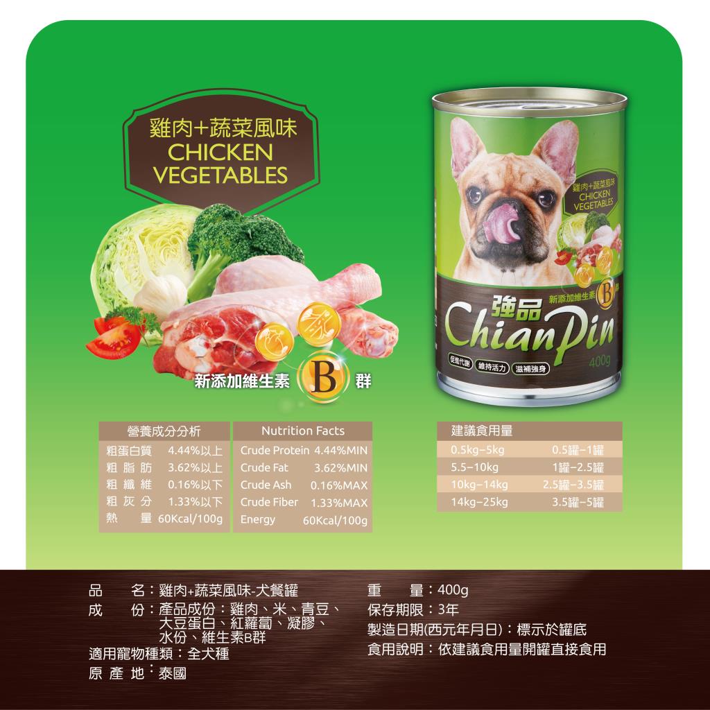 Chian Pin 強品 犬餐罐 400G-蔬菜+雞肉